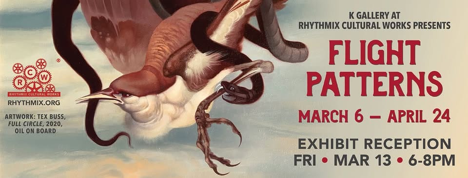 Rhythmix's K Gallery is celebrating the opening of "Flight Patterns", a stunning exhibit dedicated to Alameda's local birds. Think photography, painting, ceramics, print work, and mixed media, all curated by local birder and writer Deborah Crooks. If you've ever watched the egrets on the estuary and thought "someone should make art about that", someone did. Come meet the artists Friday night.